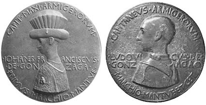 - Se Pisanello è l’artista che ha realizzato la medaglia evidentemente attribuisce a se stesso la scritta F.S.K.I.P.F.T. Ma c’è un’altra ipotesi: nei Commenti di Gaetano Milanesi alle Vite de’ più eccellenti Pittori Scultori e Architettori di Giorgio Vasari del 1550 (Sansoni, Firenze, 1906) si attribuisce la fattura della medaglia raffigurante Pisanello a lui stesso o più probabilmente a Francesco Corradini che si firma “FranciscuS KorradinI Pictor FeciT” (anche su Trésor de numismatique et de glyptique pubblicato a Parigi, 1834-1836). Certamente ne esiste una copia realizzata da Antonio Marescotti coevo a Pisanello. Per altri la medaglia del Pisanello si troverebbe in un Catalogo di bronzi e avori di origine europea presentato dal Burlington Fine Arts Club nel 1879, ma abbiamo visto che ci sono almeno tre copie della stessa. Firmare con acronimo non era una novità, anche una medaglia richiesta da Sigismondo Malatesta è firmata sul retro O.M.D.P.V. (opus Mattei de Pastis veronensis).[↩]